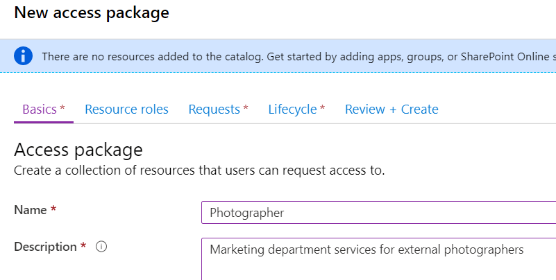 Let’s create an access package for this scenario: