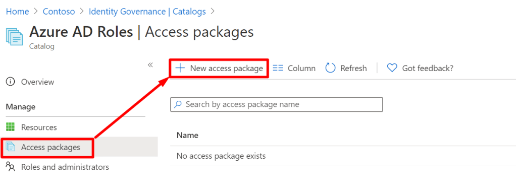 Now, go to “Access packages” and create a new access package: