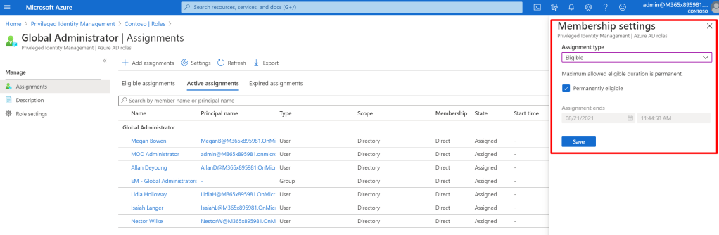Now, since this is an important Azure AD role, I will set it to expire in 7 days:
