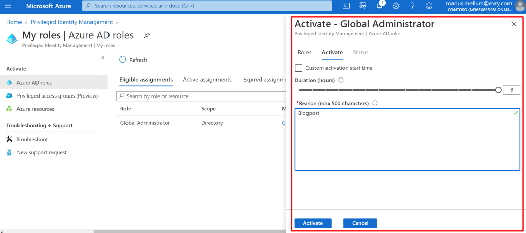 Now, the accounts that has requested the global administrator access package must also elevate to global admin using PIM!