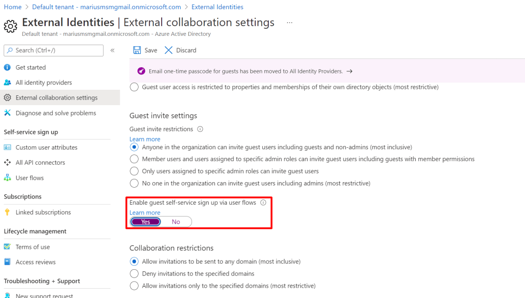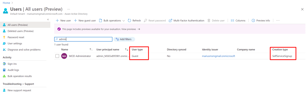 In Azure AD, we can now find a new B2B guest account created through self service sign up: