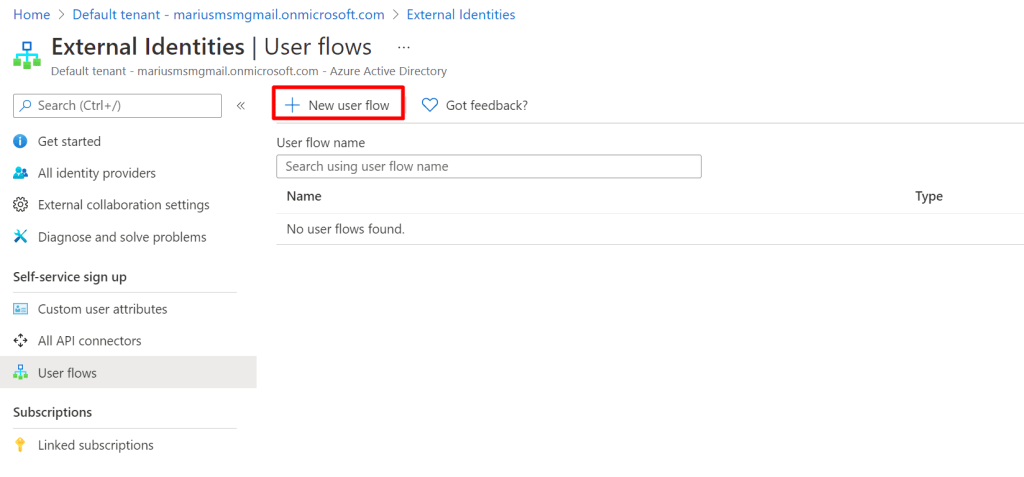 We are now ready to enable self service sign-up. First we must enable the User Flows feature: