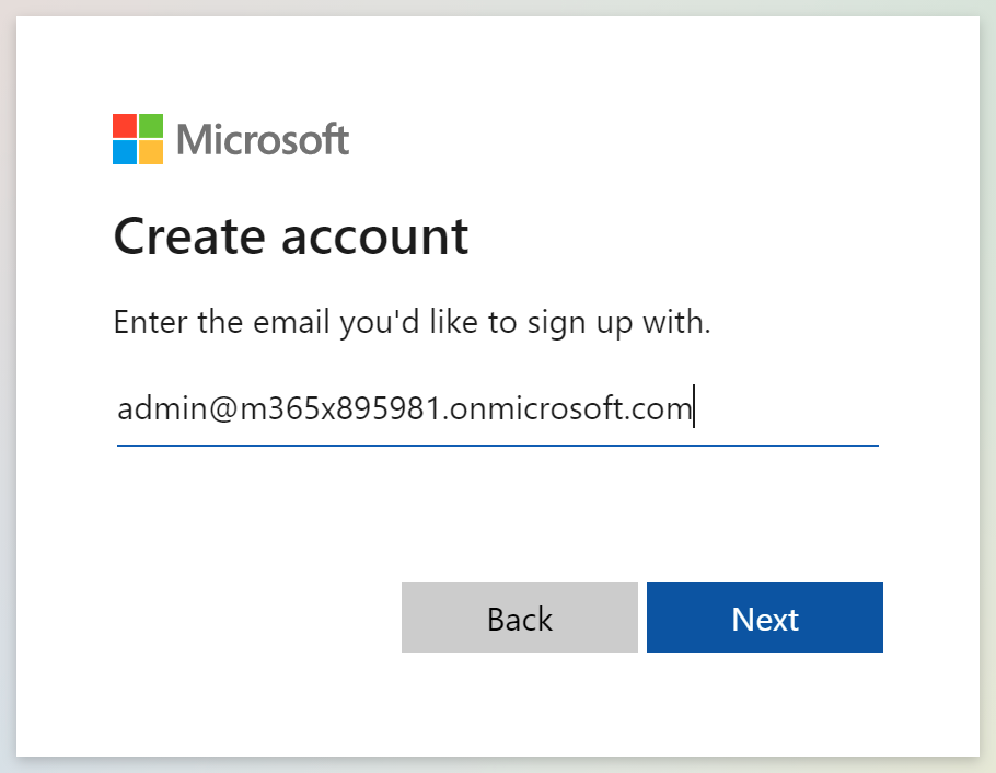 When signing up with an Azure AD account, we need to choose “Sign up with email”. We can now type our email address: