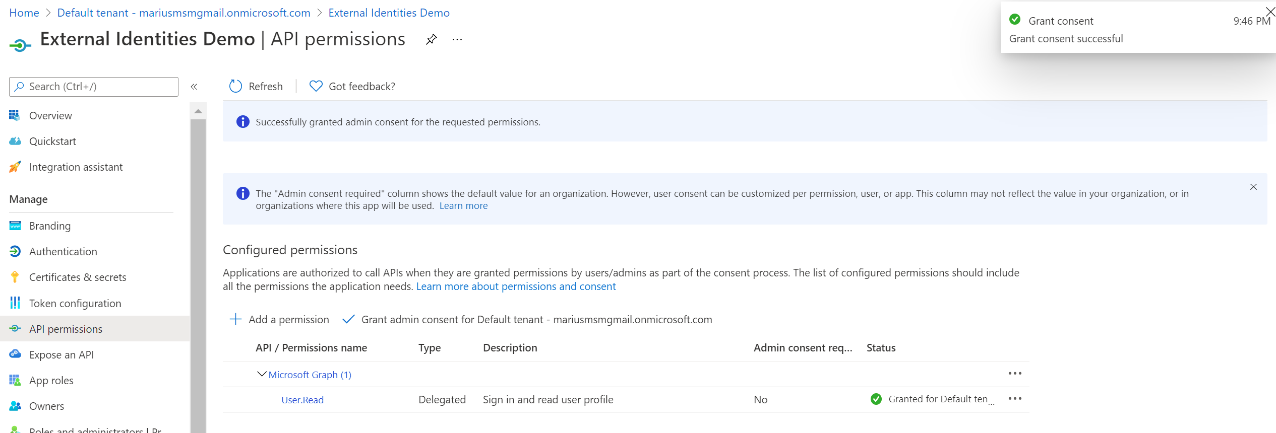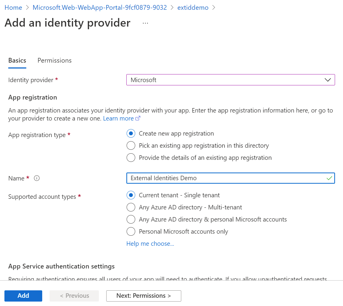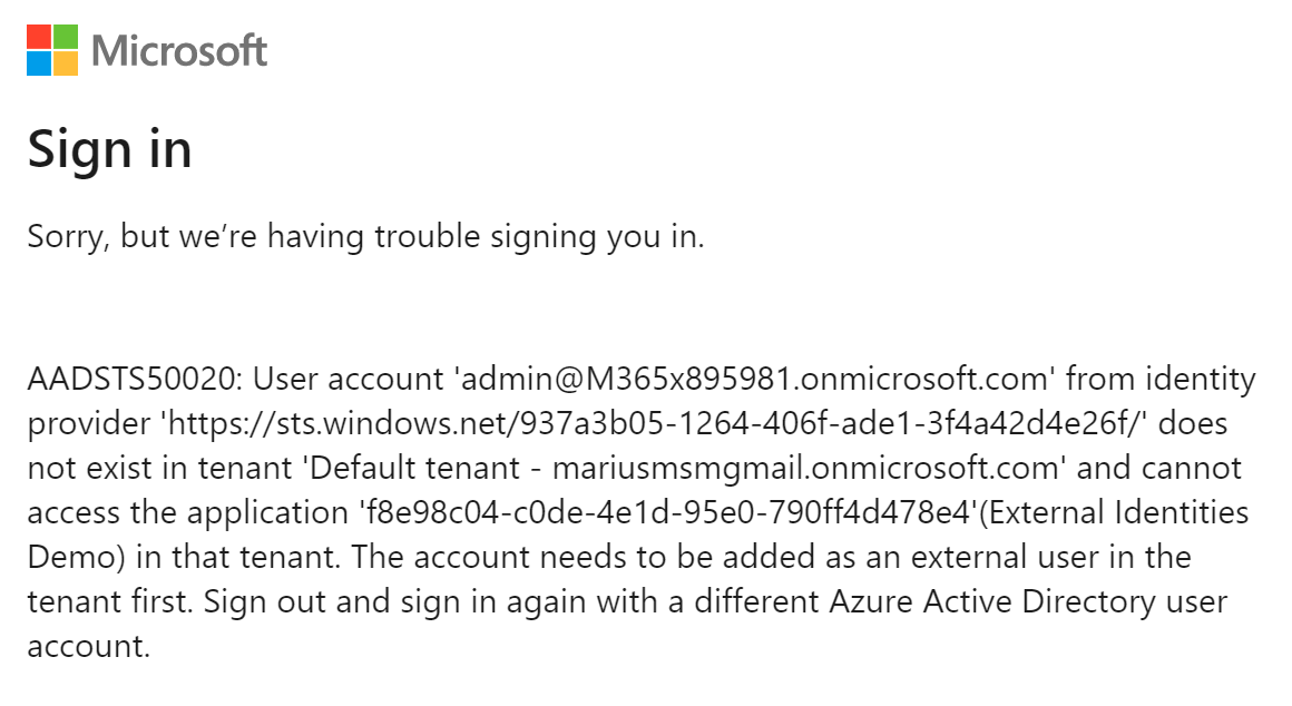 Well, we are using external identities, and with external identities, authentication happens in your tenant using a combination of B2B and B2C flow. If you, as many would have thought, chose multi-tenant application here, the authentication would happen towards the common endpoint where no B2C flow is possible and where any tenant can simply consent to using your app without going through the user flow configuration in external identities.