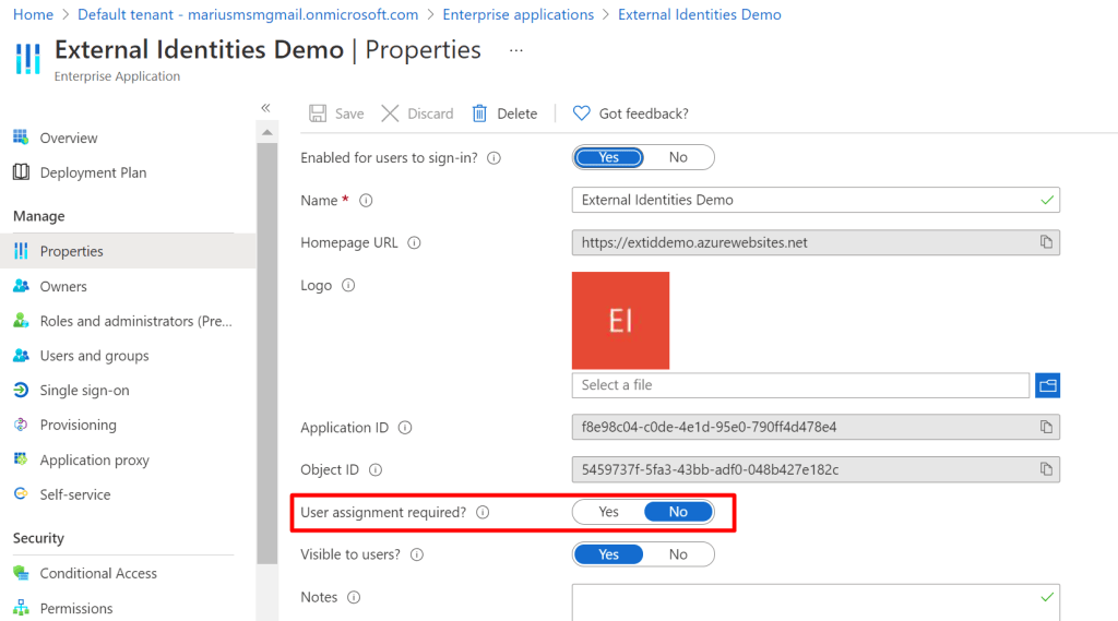 This is based on the following setting on the Enterprise App, plus the fact that it is a single tenant application: