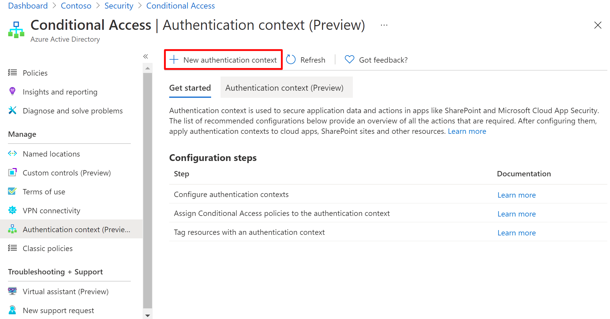 Azure AD Conditional Access has been quite powerful for a long time, but just got way better with the new authentication context feature. Authentication context is essentially a new way to scope conditional access policies, where instead of targeting an application, you target a context, such as “High security operations” or “Operations requiring consenting to terms of use”. Using the authentication context, you can split your applications into several assurance levels, each being targeted by a separate set of CA policies.
