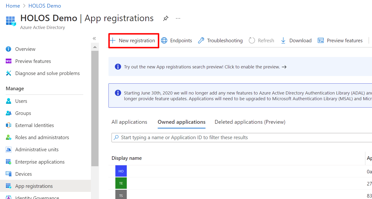 Now, go to Azure AD, and we will create the app registration for which to roll over the certificate. This can of course be an existing app.