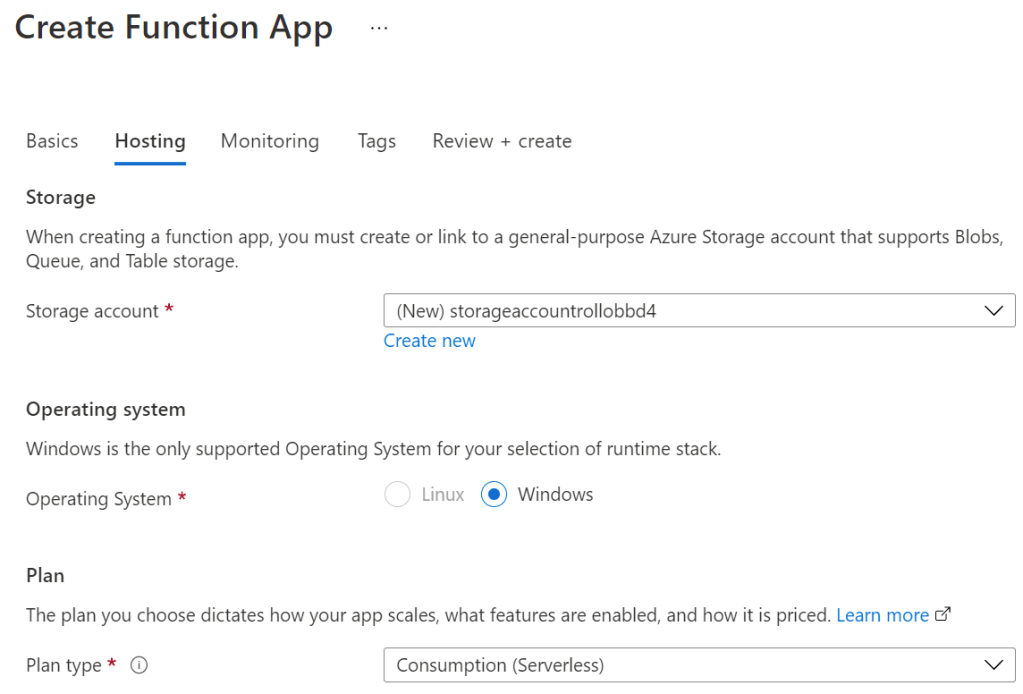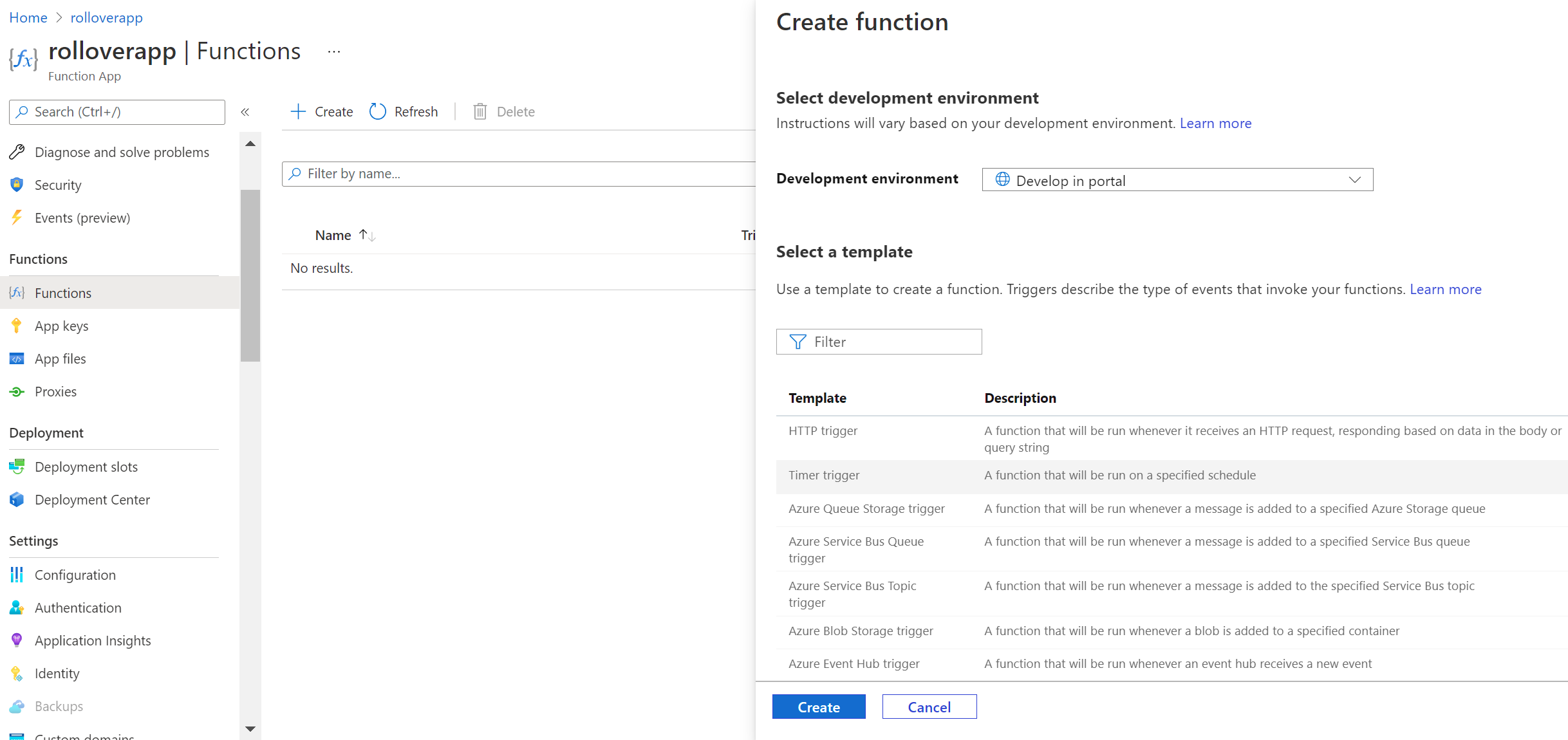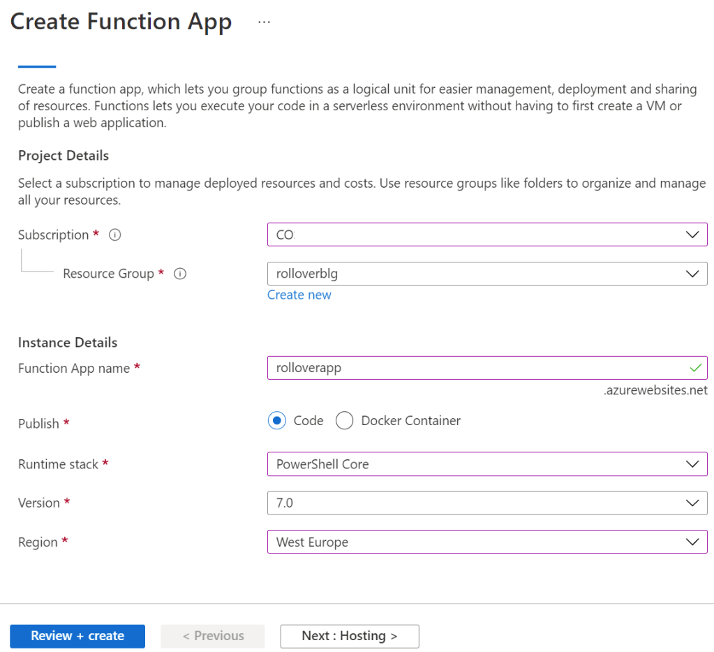 Let us start by creating an Azure Function app in Azure: