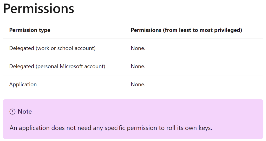 There are several documentation pages on docs.microsoft.com on managing application registration certificate rollover, including several github repos from Microsoft, all of which are either using a silly approach with high privileged user account (Global Admin, Application Admin, etc) or does not delve into details on how to solve the issue with least privilege and in a proper automated fashion when using KeyVault.