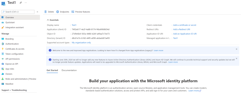 Now, over to Tenant B. We create a “New app registration” and end up here: