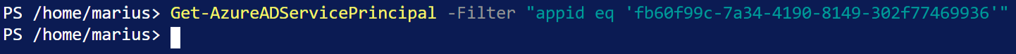 ServicePrincipalNames              : {fb60f99c-7a34-4190-8149-302f77469936, api://AzureADTokenExchange}