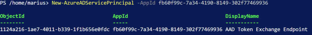 AppDisplayName                     : AAD Token Exchange Endpoint