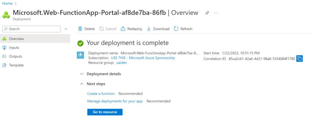 Now you will be sent to the edit page of the function, click Code + Test and paste the below code, replacing the guid 0de0c0b9-362f-4695-b2f5-ad8685b9c579 with the clientid of your own user assigned identity: