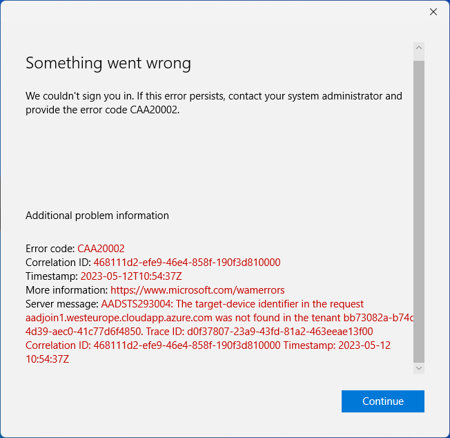 One thought on “Signing into Azure joined virtual machine from any device