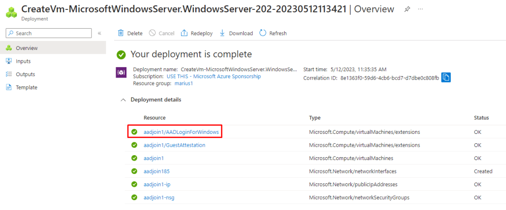After deployment of the VM, we should see this extension being added: