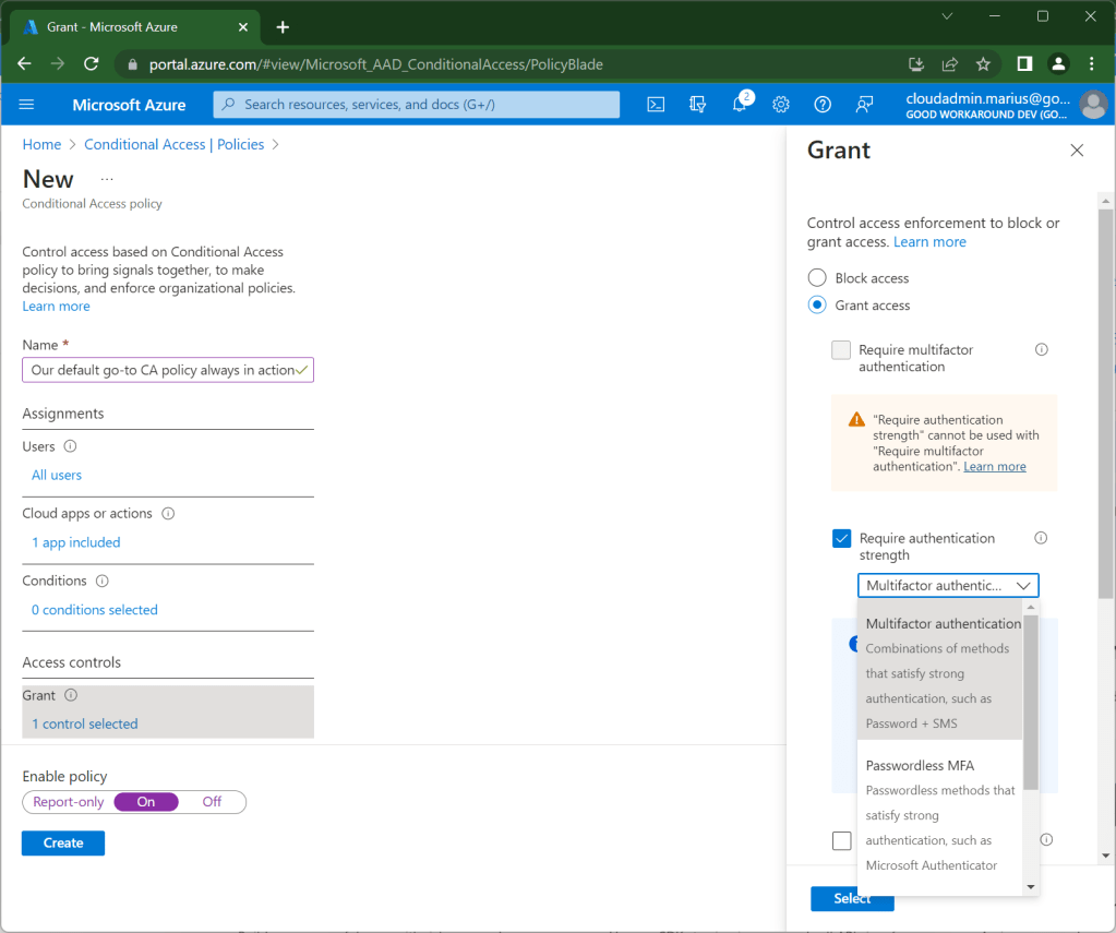 To remind ourselves of our goal: Require a phishing resistant authentication method in order to manage conditional access policies.