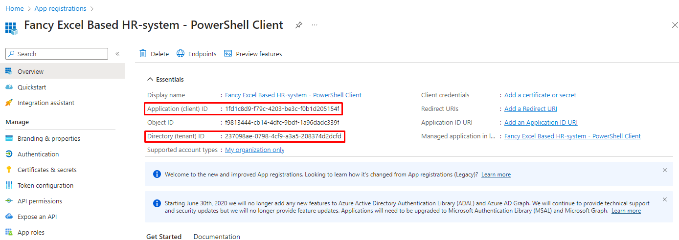We’ll start by adding a new app registration, secret and granting the required permissions: