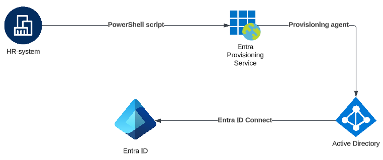 Well, essentially we will have a fancy Excel based HR-system, that will utilize PowerShell for talking to the Entra ID Inbound Provisioning API, which then will write users to an on-premises Active Directory, which is synchronized to an Entra tenant.