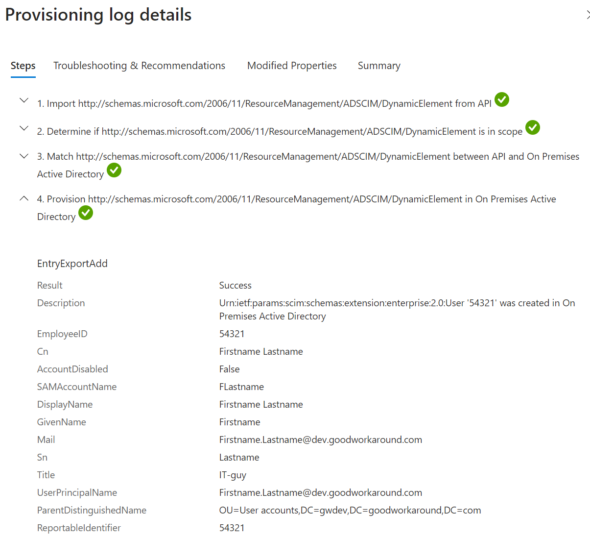 We have now successfully provisioned a user in Active Directory, without ever talking LDAP, ADWS or anything! Let’s automate this using PowerShell.