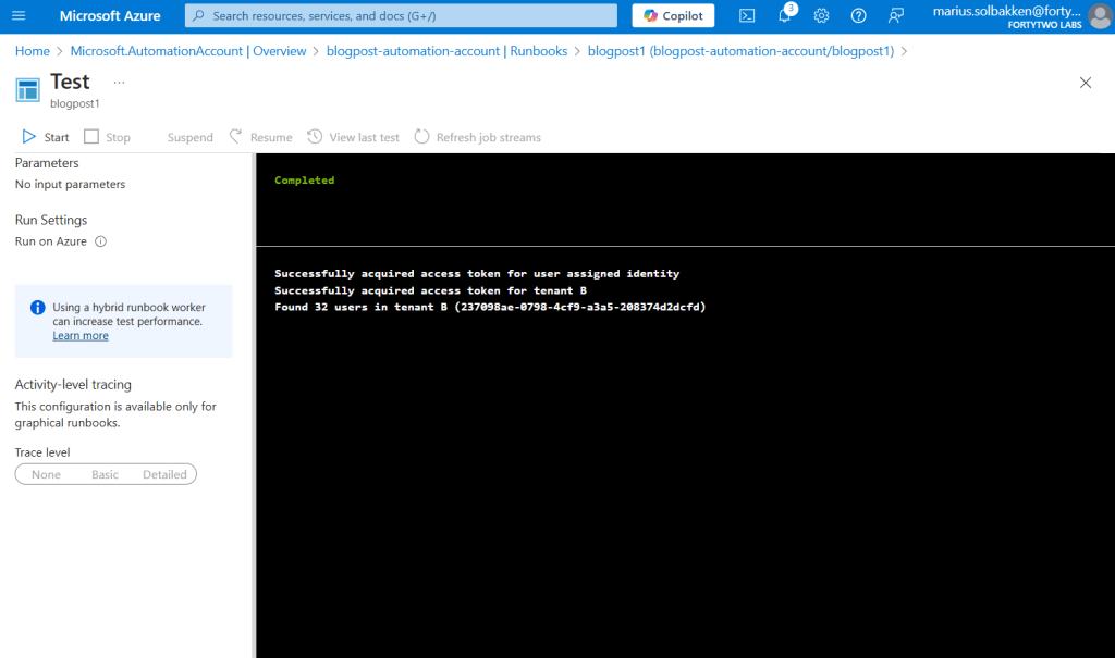 Running the runbook should look something like the following: