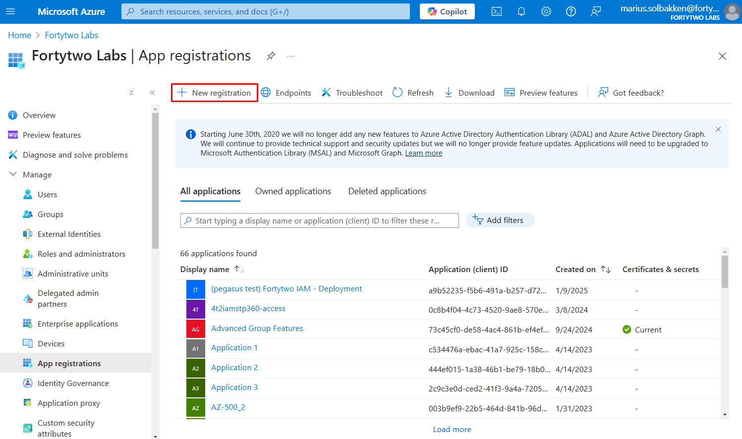 Creating the app registration