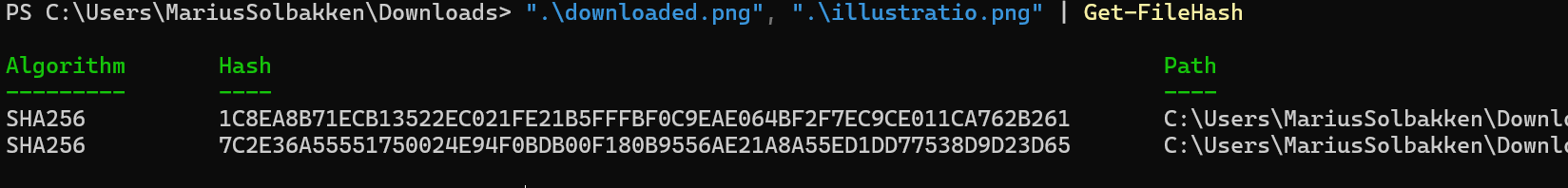 And even though we expect the same data to be downloaded, we get a different file: